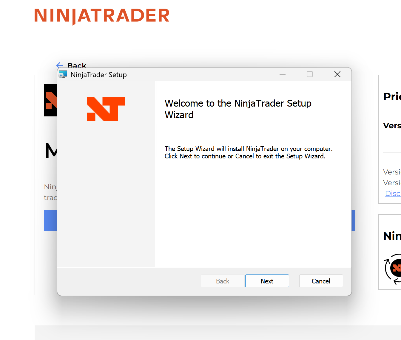 - Click Back, and then click Download to get the latest version of NinjaTrader 8.